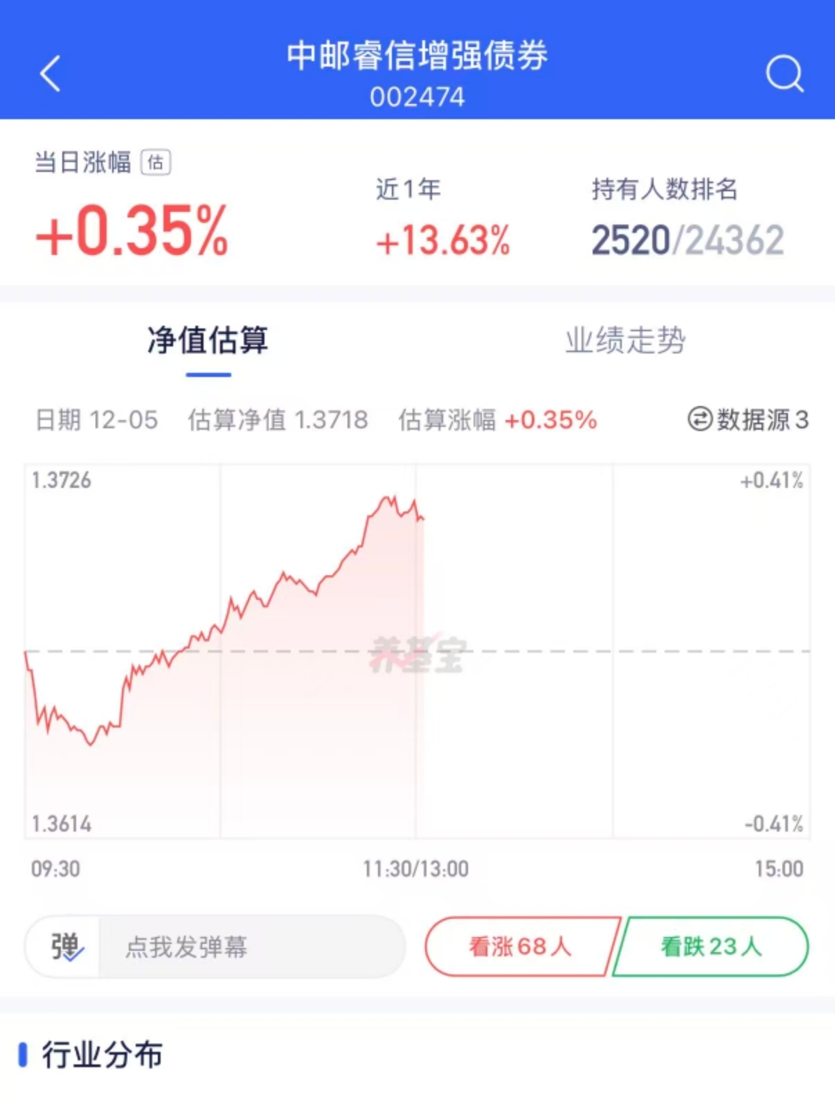 #12月基金投资策略# 虽然之前回调,但是这一反弹不是力度挺大的,看看$中邮睿信增强债$ 估值就知道了,期待吃肉