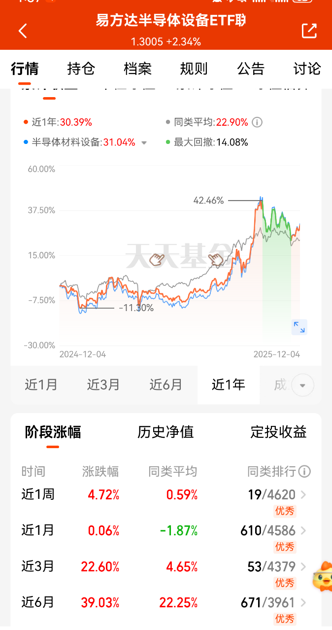 半导体设备:低吸5000的$易方达半导体设备ETF联接C(OTCFUND|021894)$ ,今天摩尔线程的吸血效应挺强的,导致半导体这块儿今天表现偏弱,但是!半导体设备是本周为数不多形成了周阳线的,周线反弹趋势明确,所以小小今天直接低吸攒份额,博弈的就是周线的上涨趋势!半导体设备位于产业链上游,是支撑芯片制造与封测的核心产业。根据SEMI的数据,2025年上半年仍以332%的份额保持全球最大单一市场地位,国内设备龙头业绩表现亮眼,2025年前三季度八家龙头公司合计营收同增37.3%,归母净利润同增23.9%。随着AI大模型驱动存储技术向3D化演进,叠加长鑫、长存等国内存储大厂扩产项目落地,国产半导体设备产业链有望迎来新一轮高速增长机遇,发酵逻辑和空间兼具,小小耐心等爆发。