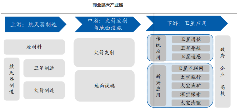 随着全球卫星市场的结构性变化,以及美国 SpaceX 的成功示范效应,中国不断自主完善航天产业体系,推动中国商业火箭行业的快速发展。当前,中国的运载火箭市场主要由航天科工、航天科技等公司主导,少数民营企业占据的市场份额不断提升。随着“一箭多星”技术的成熟,中国的运载火箭产业市场规模预计每年达百亿元,商业航天的发展空间巨大。