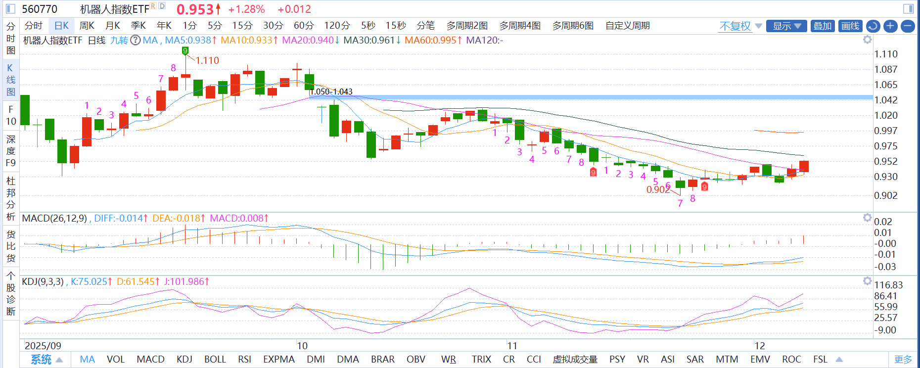 机器人板块:技术面周线上涨趋势未改,今日板块低开后震荡走强,机器人ETF午后拉升目前近一个点,资金有不少流入,躺平不乱割,麦爸继续持仓看涨。