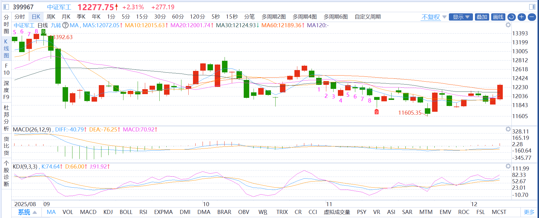 军工板块:周线震荡上行,日线级别今天继续走强,航天航空、卫星互联网领涨,量能温和放大,均线形成支撑,技术形态向好,商业航天赛道前景广阔,麦爸选择持仓看涨。