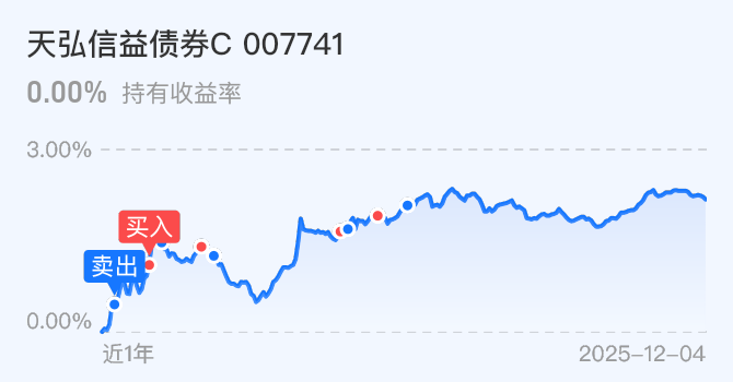 个人今日上车天弘信益债券C--10000元,这是一支7免灵活性强的纯债基金。近日纯债波动有所加剧,对于长期视角且当成底仓配置而言,我认为反而可能是等待区间底部及逢低布局的时机。持仓结构:无杠杆,债仓87.54%中以65.13%的信用债为主要占比,以安全等级高的银行债及低波动同业存单为主、利率债18.51%以农发债为主,农发债的票息一般高于同期限的国开债,且波动性低于国开债。无可转债、无股票。避开剧烈波动,近一年历史涨幅2.18%,收益上限比一年期存单更有性价比,且7天持有0费率的交易规则对于短期资金参友好,不锁仓灵活性佳,个人逢低上车10000元,也是我以前经常买的纯债方向之一,低波动标的,耐心等一轮补涨修复行情。