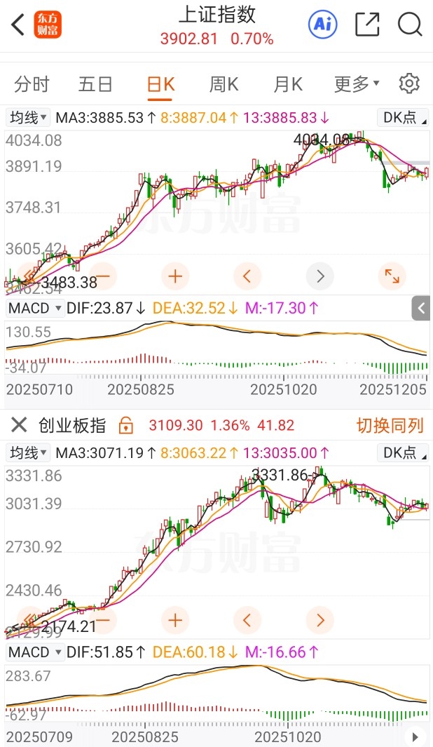 2、指数年内不会有什么作为,能维持箱体震荡基本就是算友好了,漂浮不定的量能决定了向上空间极其有限,基本面亦难有加分,若后市量能持续低于1.5万亿,指数下台阶回踩3674的可能性更高,年关收账锁定收益才是重点,激进博取更高收益很可能偷鸡不成蚀把米适得其反。