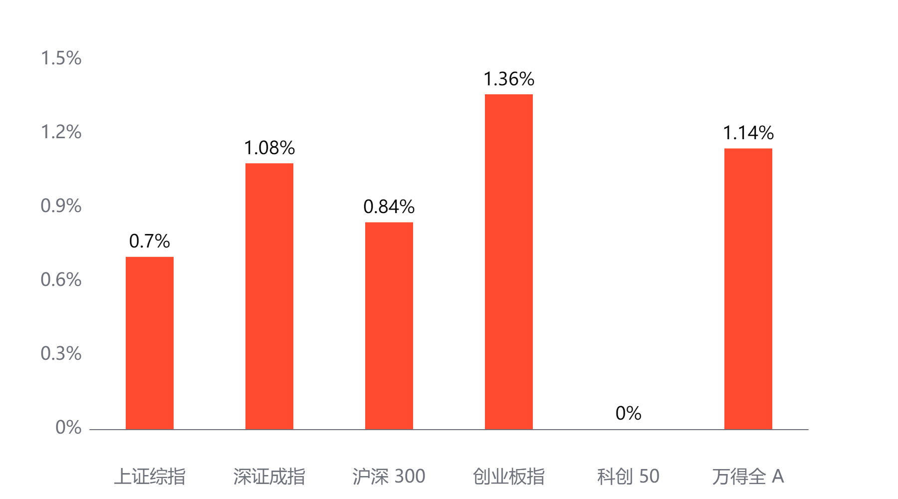 截至今日收盘,市场各主要指数普遍上涨。上证综指收3902.81点,上涨0.7%;深证成指收13147.68点,上涨1.08%;沪深300上涨0.84%,创业板指上涨1.36%,科创50平收0.0%,万得全A上涨1.14%。