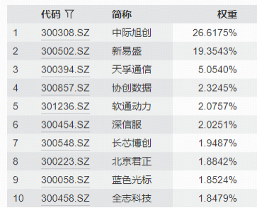 截至2025.12.4,创业板人工智能指数前十大权重股如下: