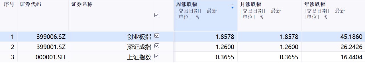 本周三大指数表现: