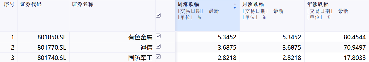 本周涨幅前三行业: