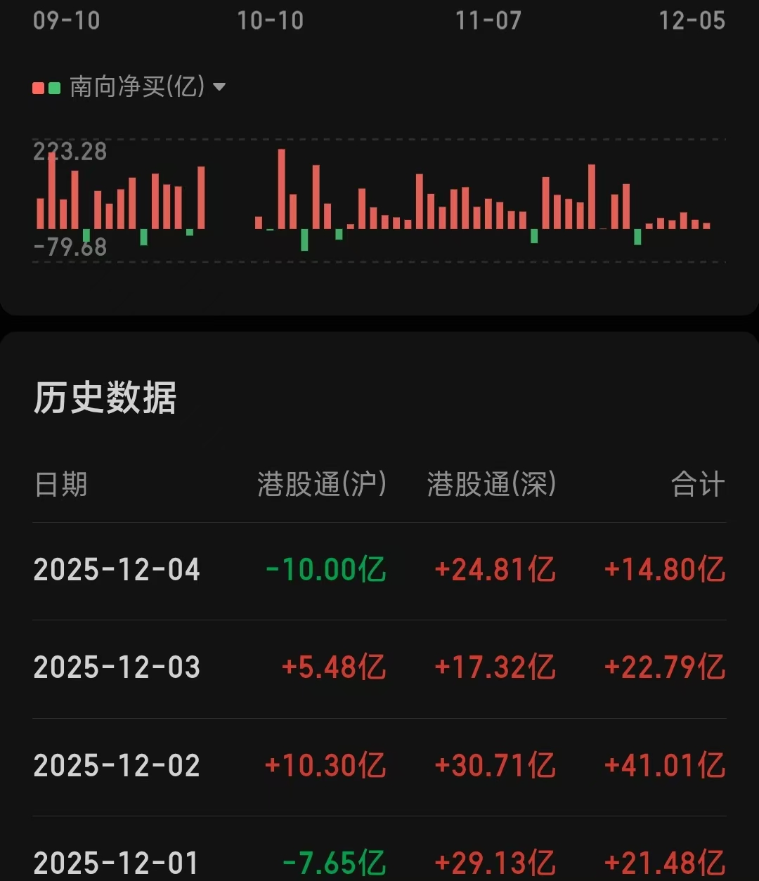 南下资金:本周交易净流入分别为21.48亿、41.01亿、22.79亿、14.80亿、13.41亿,总计净买入113.49亿港元。有图有真相,五天净流入,内资对港股还是一如既往的热情,随着降息落地,外资的回归,内外双管齐下,就是吃肉的时候。