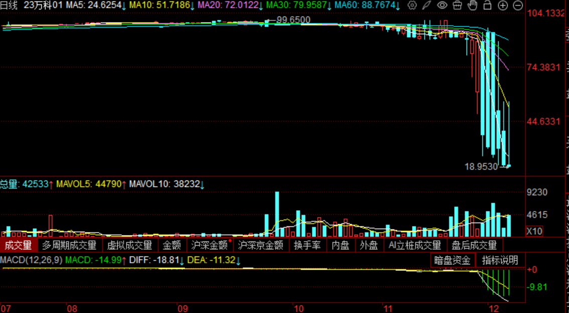 万科动态:大家看图,虽然咱也是经过牛熊切换,但这种K线这种第一次见,原因之前也说的,万科存在市场化的可能,市场用脚投票,不过身边也有朋友说深地铁不会放任。个人观点,君子不立于危墙之下,市场的机会很有多,何必刀口舔血呢。