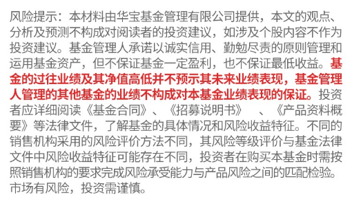 风险提示:本材料由华宝基金管理有限公司提供,本文的观点、分析及预测不构成对阅读者的投资建议,如涉及个股内容不作为投资建议。基金管理人承诺以诚实信用、勤勉尽责的原则管理和运用基金资产,但不保证基金一定盈利,也不保证最低收益。基金的过往业绩及其净值高低并不预示其未来业绩表现,基金管理人管理的其他基金的业绩不构成对本基金业绩表现的保证。投资者应详细阅读《基金合同》、《招募说明书》、《产品资料概要》等法律文件,了解基金的具体情况和风险收益特征。不同的销售机构采用的风险评价方法不同,其风险等级评价与基金法律文件中风险收益特征可能存在不同,投资者在购买本基金时需按照销售机构的要求完成风险承受能力与产品风险之间的匹配检验。市场有风险,投资需谨慎。