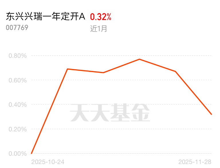 最近债券市场波动,可以关注一下$东兴兴瑞一年定开A$近一个月收蛋32个