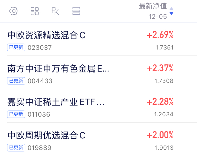 今天大盘低开高走,随着三大指数的集体收涨,整体行情表现不错,其中有色资源类盘中延续走强,今晚相关基均涨幅不错,来看具体净值概况: