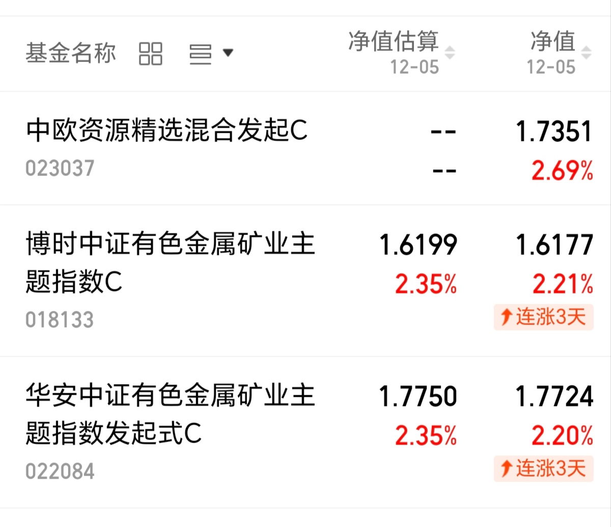 $博时中证有色金属矿业主题指数C(OTCFUND|018133)$涨幅2.21%