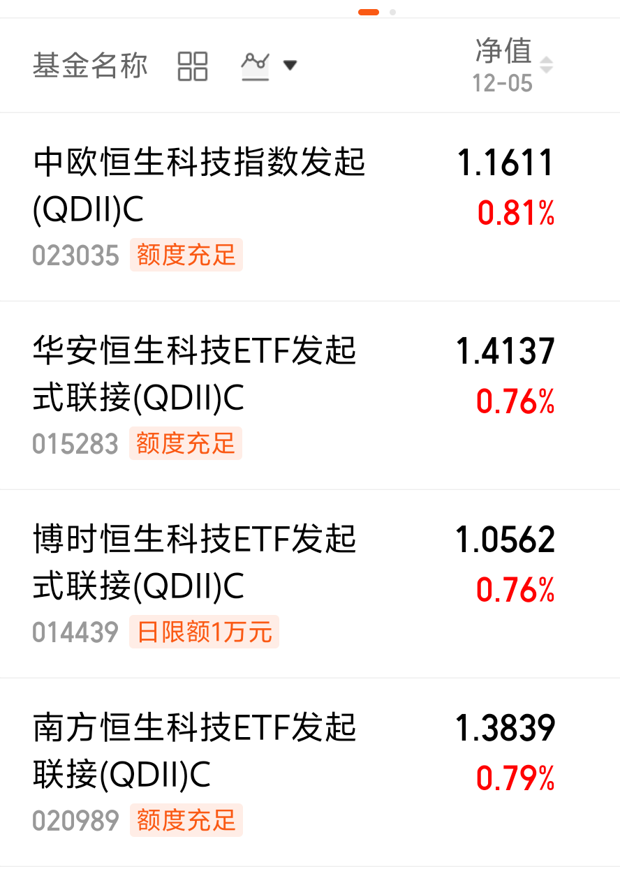 $华安恒生科技ETF发起式联接(QDII)C(OTCFUND|015283)$今天涨了0.76%