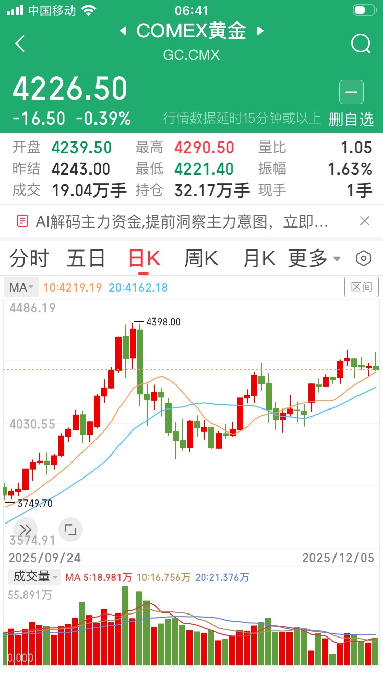 5日夜间,黄金下跌0.36%,白银上涨2.28%,ICE布油上涨1.01%。