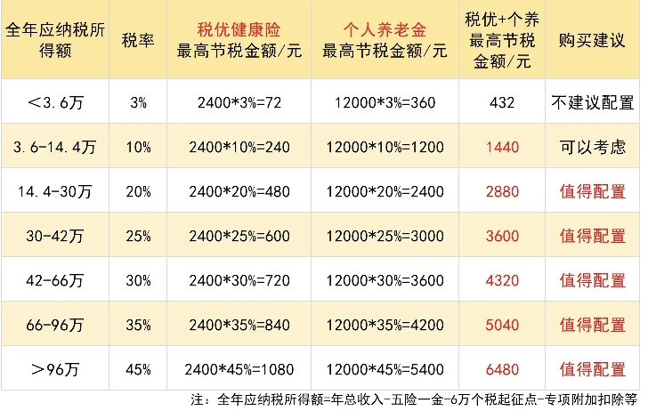 #青禾创作计划# 周末来个碎碎念,关于税的。年底了,一年一度的汇算清缴虽然要年初才开始,但是汇总的数据却是截止到今年底的,有些准备大家要开始做了。规划好了能多退好几千呢。这几年的趋势大家都感受到了,几乎所有收入都要缴税,合理合法的节税就得咱自己上上心了。聊到这个话题,肯定有些童鞋要吐槽各种减薪裁员啥的,除了专项附加扣除的部分外,还有税优险跟个人养老金,两个是可以叠加的。我放个表格P1,大家看看自己的年应该缴纳税收(扣除五险一金-6万个税起征点-专项附加扣除等),P2是个税app里查看税优险跟个人养老金的地方
