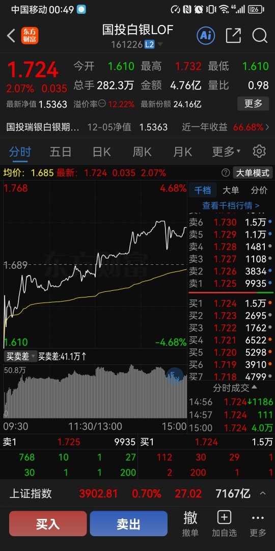 最近,投资圈有个产品特别火——“国投白银LOF”。很多朋友发现,它在支付宝上的净值涨幅,远远赶不上其在股票软件里的一路狂飙,两者价差(专业叫“溢价”)最高时能超过10%!这意味着,如果能用一个价格买到,再用另一个价格卖出,中间就藏着“无风险”赚差价的诱惑。
