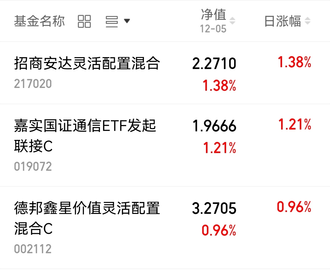 $嘉实国证通信ETF发起联接C(OTCFUND|019072)$上周五涨幅1.21%