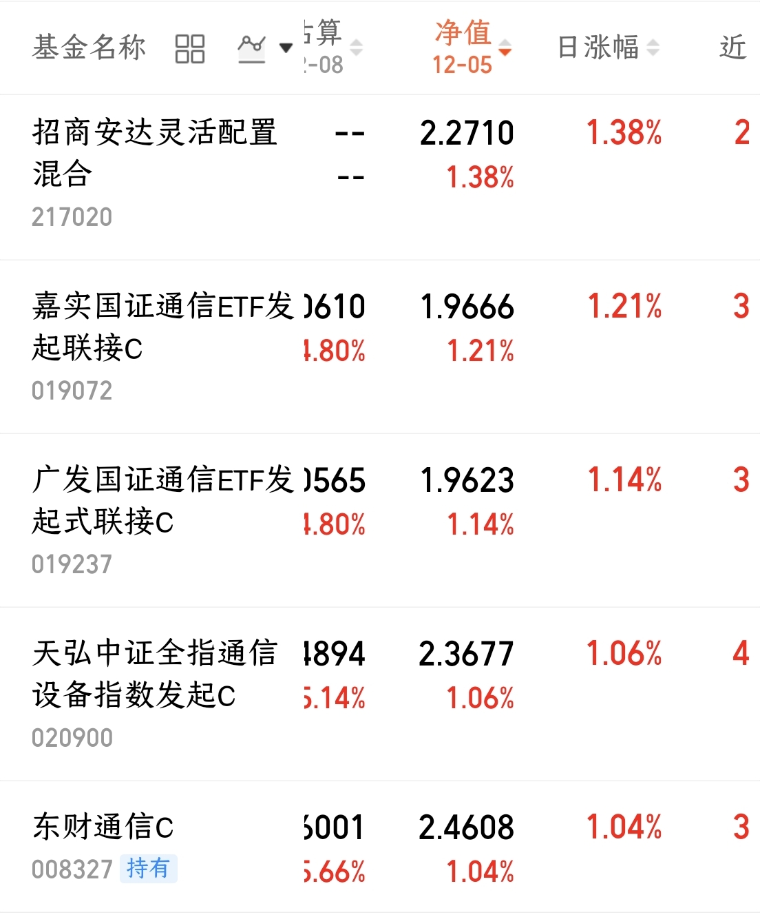 $东财通信C(OTCFUND|008327)$上周五上涨了1.04%