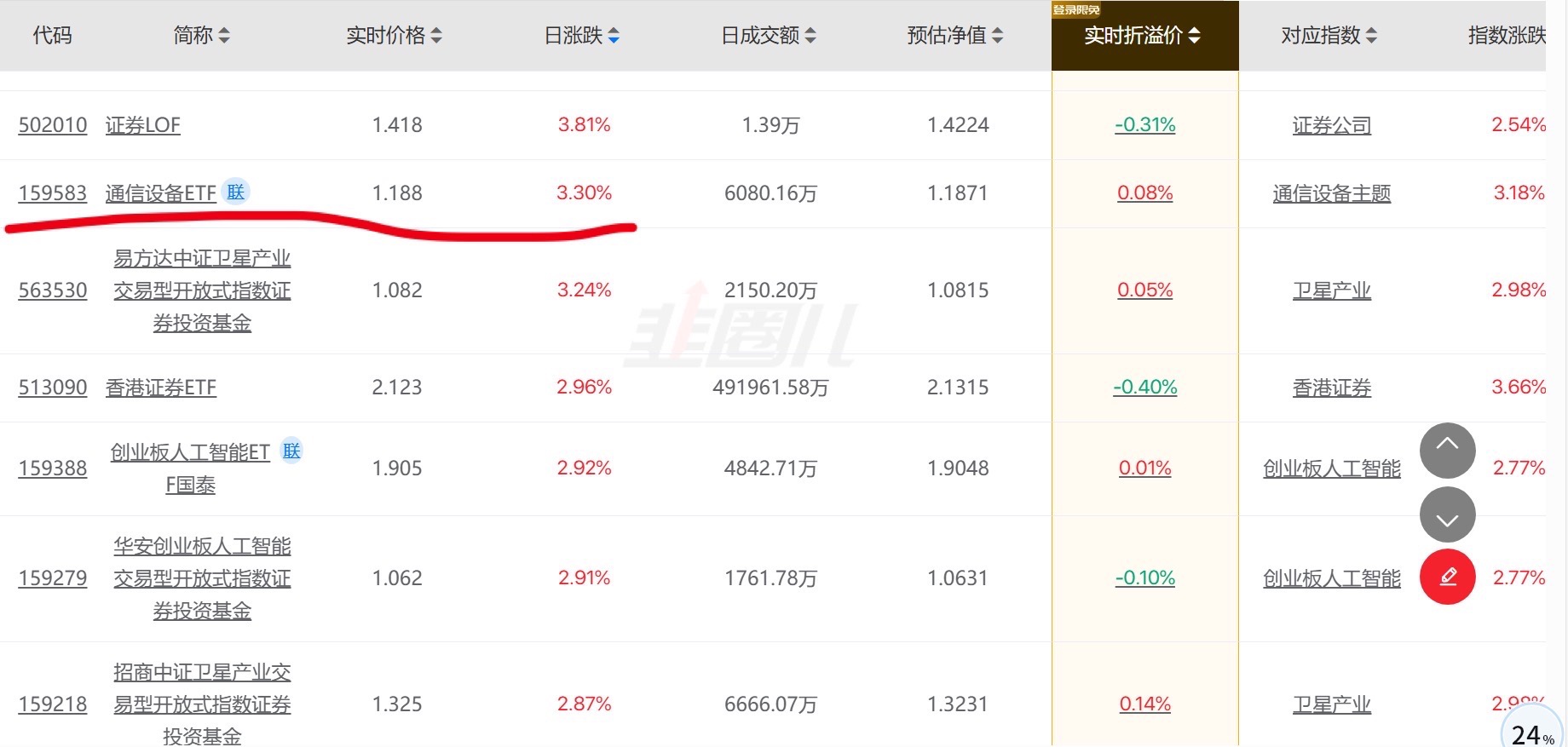 嘿,家人们!瞅瞅这通信设备ETF(159583),今儿个涨得那叫一个欢实,日涨幅3.30%呢!