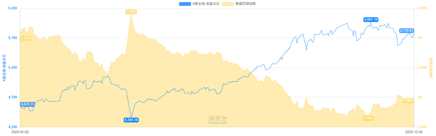 本周(2025年12月1日-2025年12月5日)大盘仍处于震荡阶段。前4天摇摇欲坠,星期五则突然上涨,中证全指一举收复了前4天的失地,一周下来还微涨了0.78%。