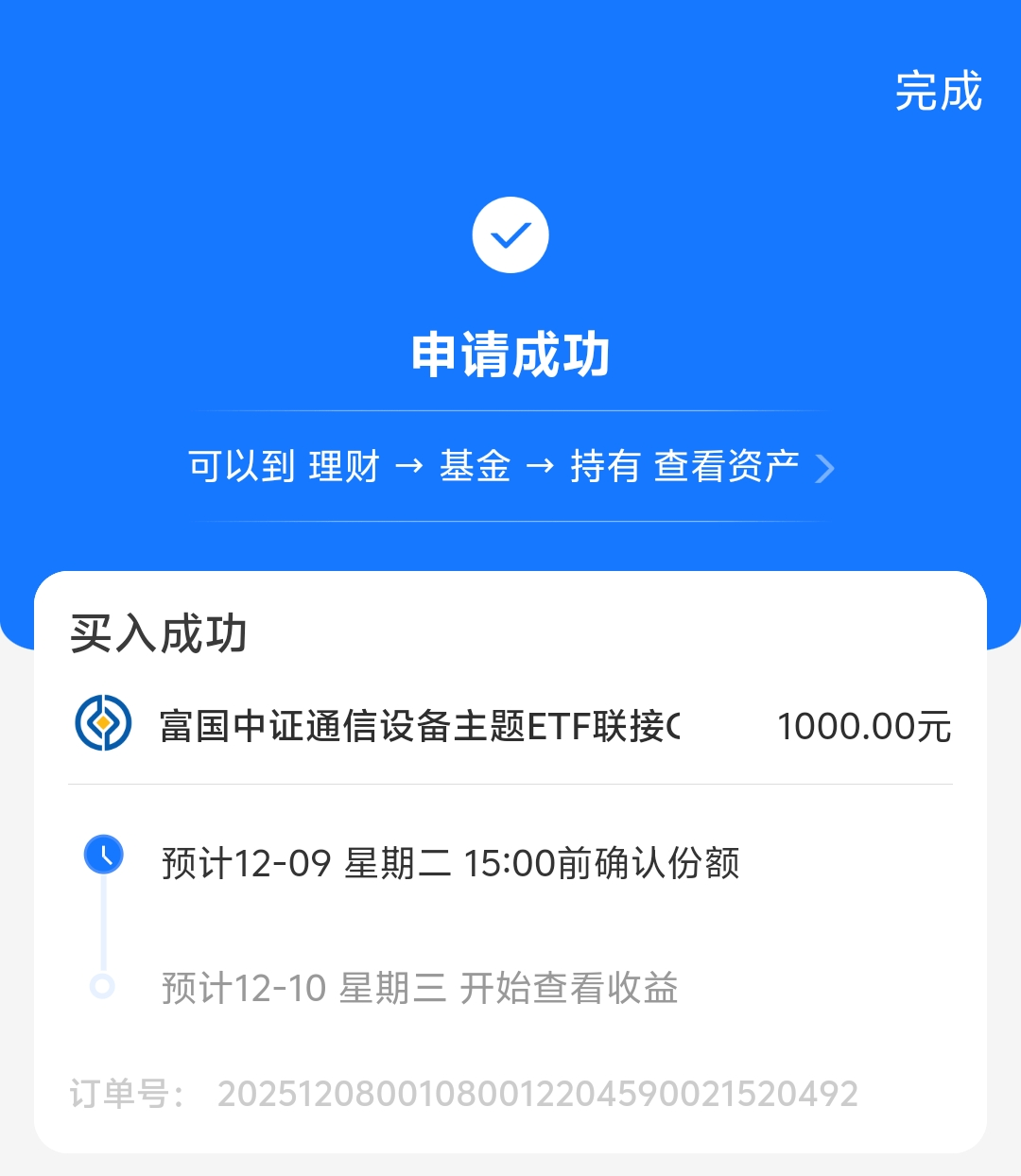 谁能想到数字生活的“隐形功臣”是通信设备!刷到$富国中证通信设备主题ETF发起式联接C$ ,聚焦设备和组件公司,光模块龙头三家合计权重55%,近期涨势超猛,卫星通信还沾了商业航天+太空算力的光。平时视频通话、户外直播的流畅体验,全靠这些基础设施撑着,从城市到乡村,无缝连接的需求只会越来越深。短期有市场情绪影响,但长期逻辑太稳了,今天加仓1000元,把这个暗线机会记在小本本上~