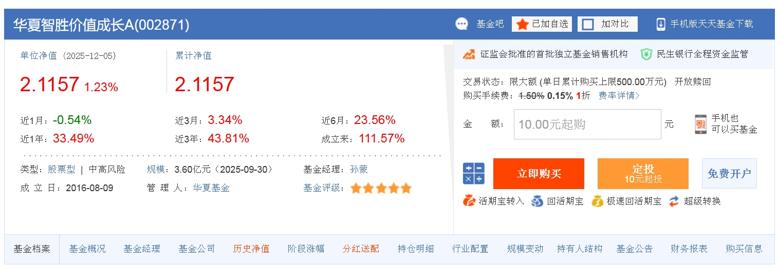 #心仪的超额收益基# 华夏智胜价值成长A(002871)深度测评:量化驱动的价值成长先锋