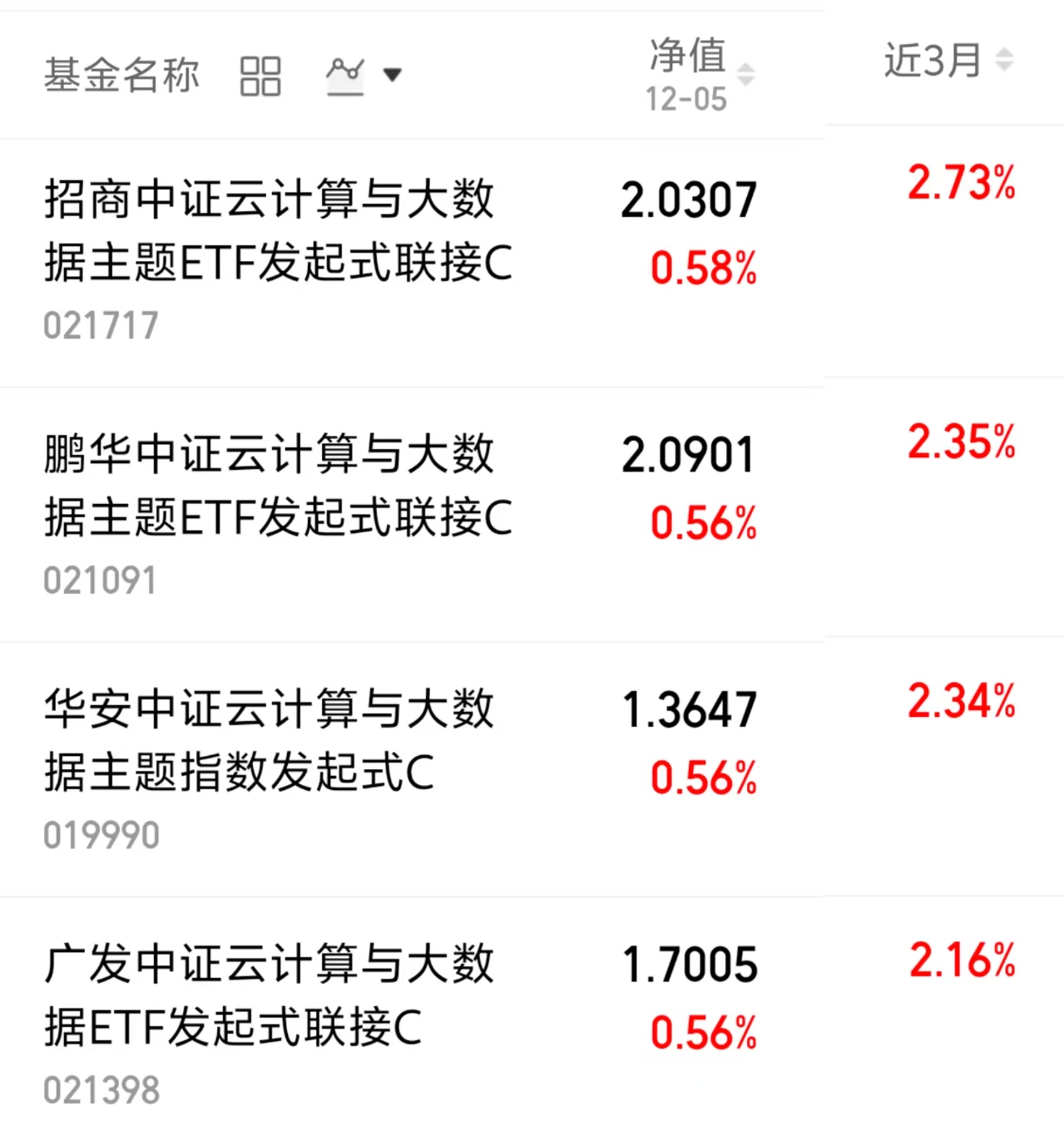 $招商中证云计算与大数据主题ETF发起式联接C(OTCFUND|021717)$上周五涨了0.58%,近三个月涨了2.73%