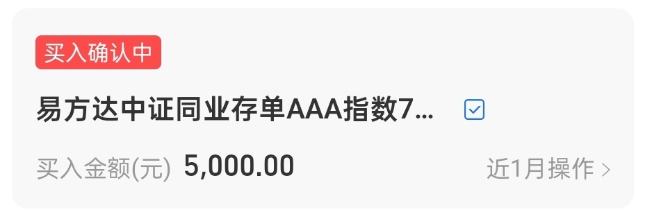 $易方达中证同业存单AAA指数7天持有$ 今天隔壁继续反弹,债市还是挺弱的,近期债市频繁调整,赚钱效应不太好,暂时保持观望状态,为了避开债市的调整,我还是选择把闲钱放在比较安全的同业存单里,这支是一支7天持有期的高等级同业存单,它的波动幅度和货币差不多,但是收益却比货币基金高,现在银行利率也低,既然是回货币,那不如直接回这个“货币增强版”,七天的也很灵活,近一年1.57%的收益率,在同类同业存单排行也是靠前的,近一年最大回撤只有0.09%,收益不错,回撤也小,今天个人上车5000。
