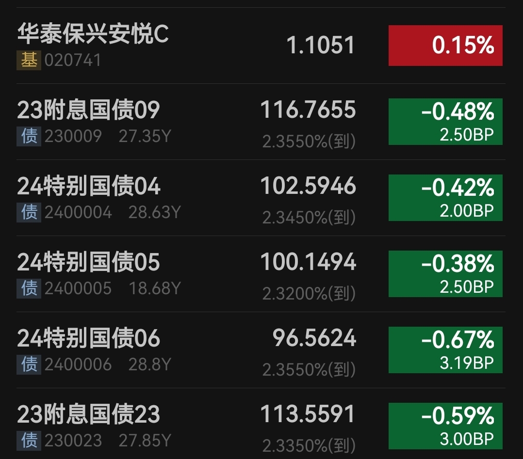 $华泰保兴安悦债券C$ 真是服了,今天超长利率继续调整,调整幅度较大,今天利率债又要吃面了!今年债市真的没什么行情,玩了这么久也没挣到钱。还好现在留的仓位不多,要不然又哭了!