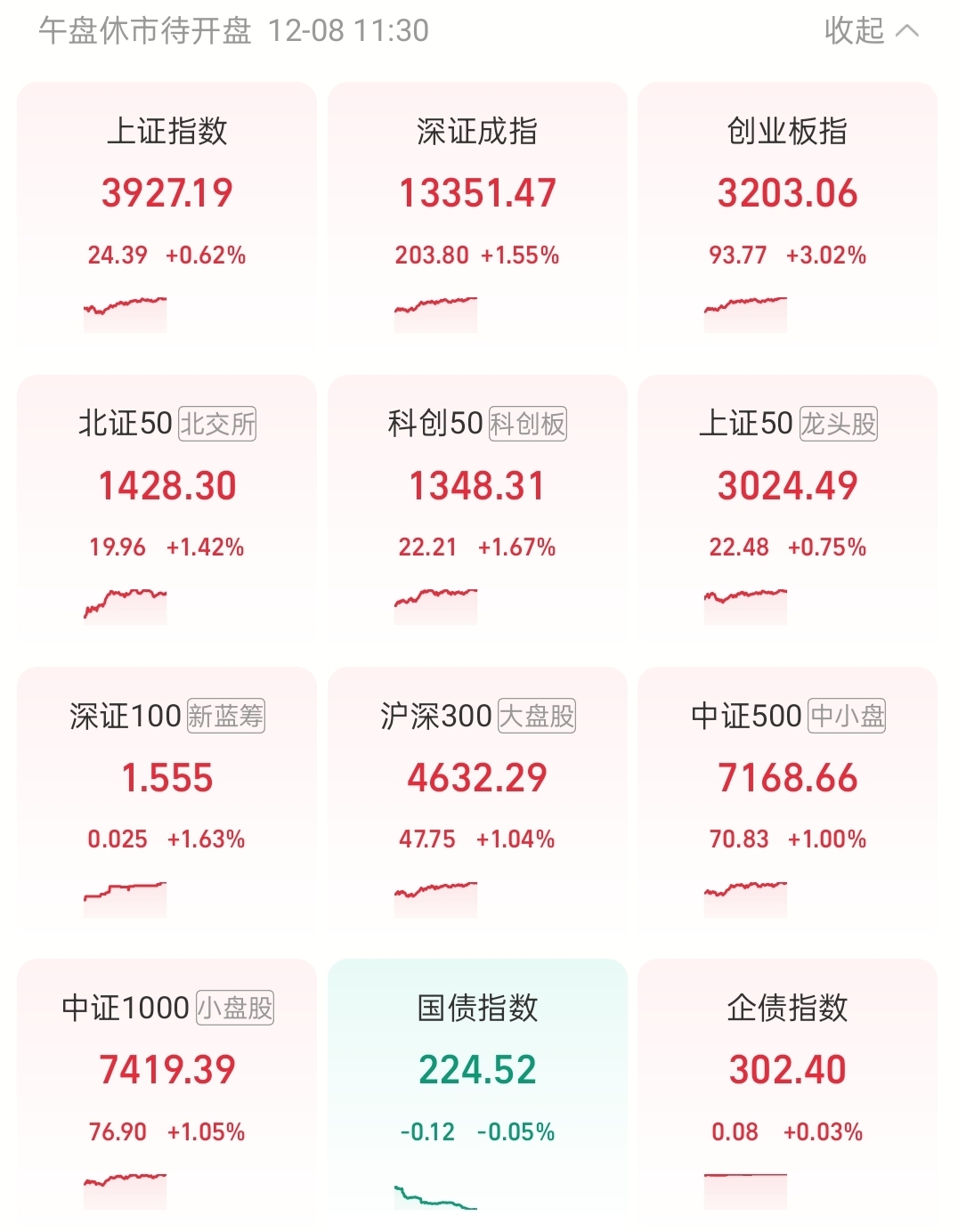 截止到午间隔壁今天表现真不错,目前全线飘红,涨幅可观。今天涨幅较好的还是cpo,恭喜持有的宝宝们今天可以吃大肉了。持有里涨幅较好的是芯片,机器人今天又一次拖后腿了,今天大肉跟我无关,目前收益只是小红,能喝口汤也不错,稳住!看下午表现!