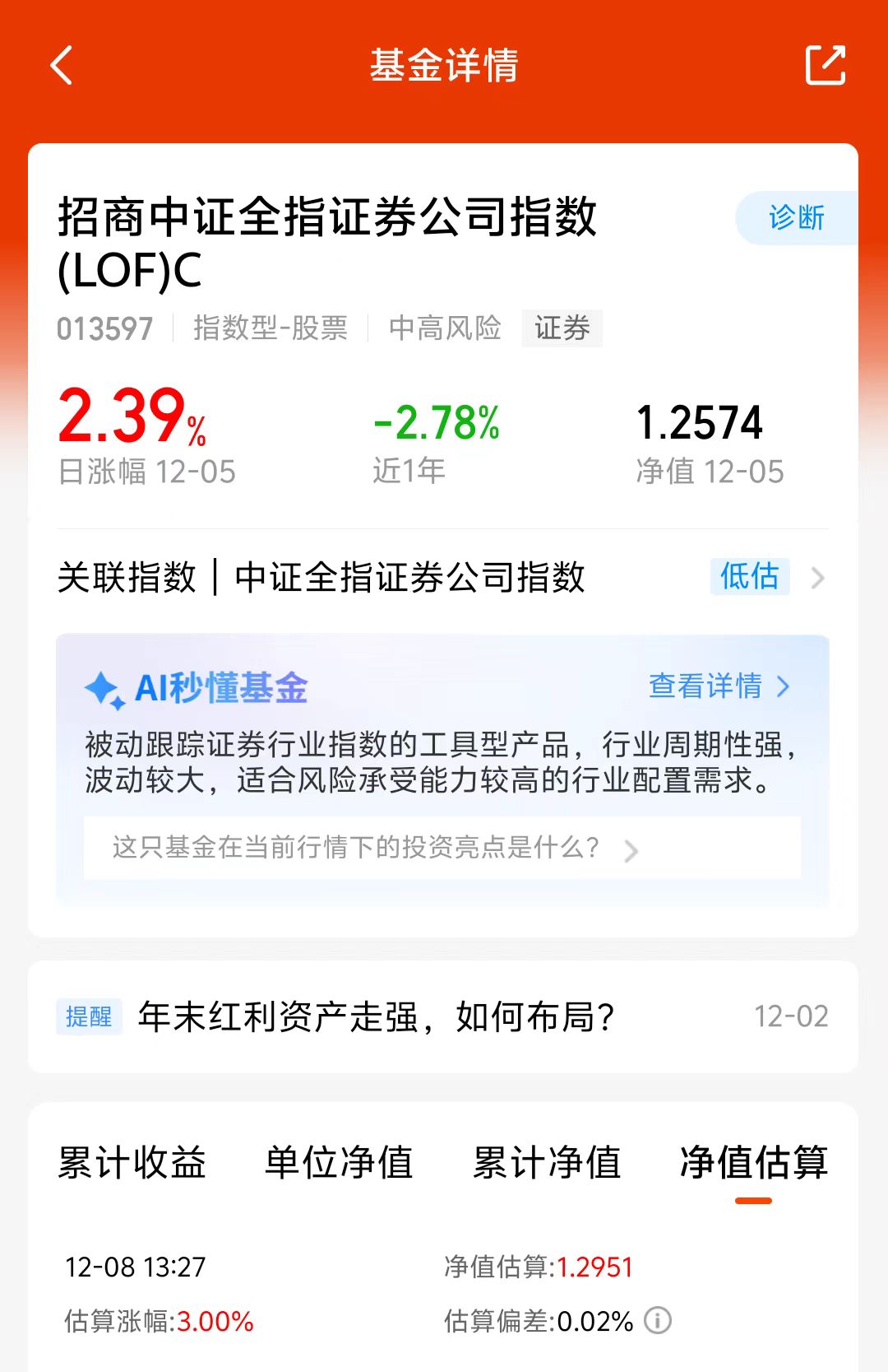 大盘今天继续上涨,三大指数整体表现还不错,证券今天涨了不少呢!吴清讲话明确了证券行业要成为战略性产业,证券行业进入政策宽松期!$招商中证全指证券公司指数(LOF)C(OTCFUND|013597)$目前预估涨幅3%,上周五涨了2.39%,长期看好这个方向,我准备分批布局!