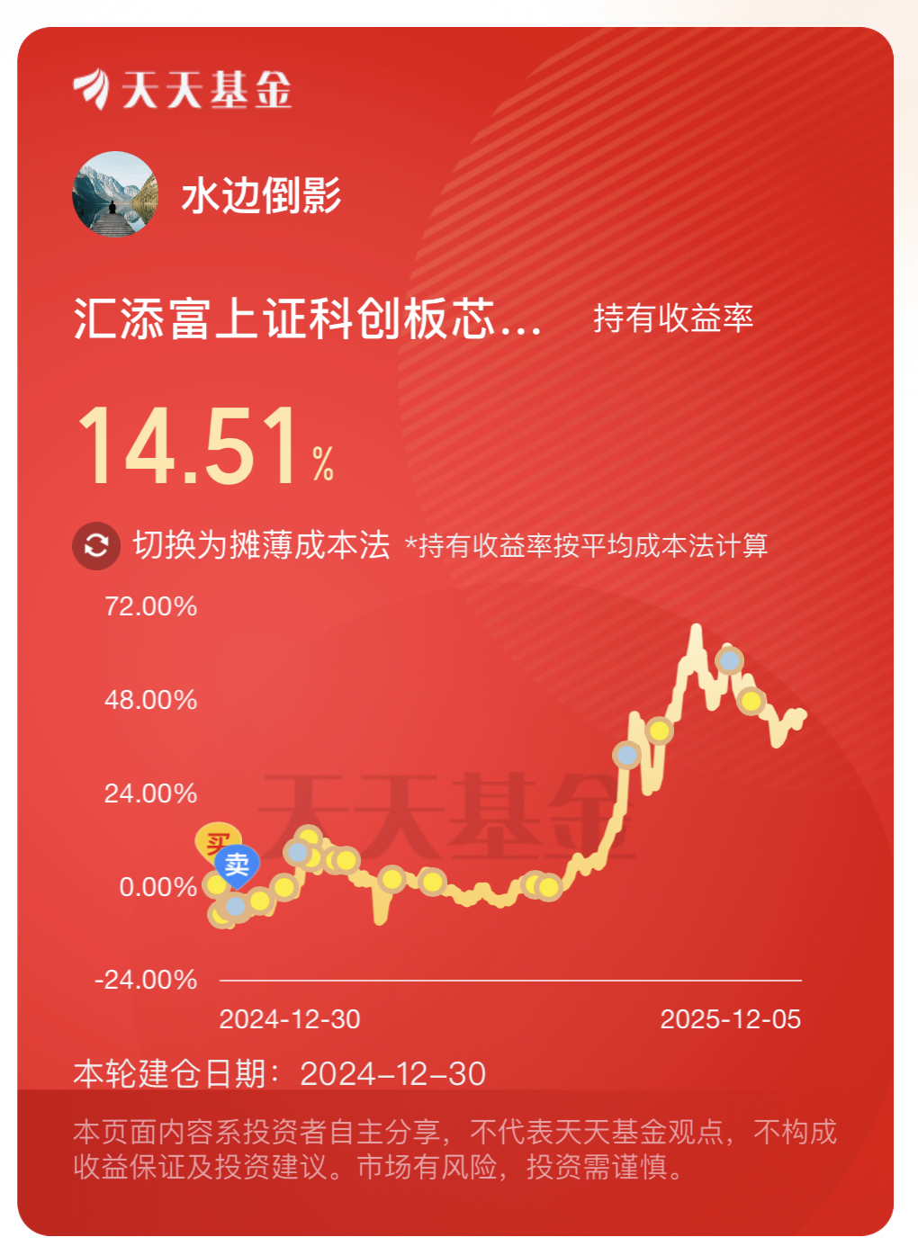 我持有的$汇添富上证科创板芯片ETF发起式联接C(OTCFUND|020629)$优势突出,聚焦科创板优质芯片龙头,精准贴合行业主线,能充分捕捉板块成长红利,业绩表现一直很亮眼。今日估值上涨3.45%,我的持有收益率达14.51%,近三个月涨11.53%,近半年大涨44.50%,收益稳定性拉满。同时基金综合费率低,操作灵活,长期持有能给我节省不少成本。趁着行情回暖,我也分批定投起来,期待后期收益在创新高。