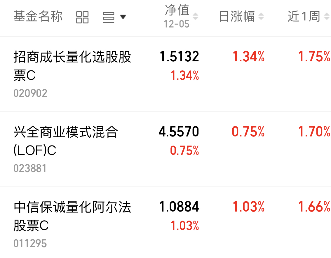 今日大盘稳稳上行,3200只个股飘红。近期量化基金表现亮眼,在这波上涨行情里收益不错,来看看它近一周的具体涨幅: