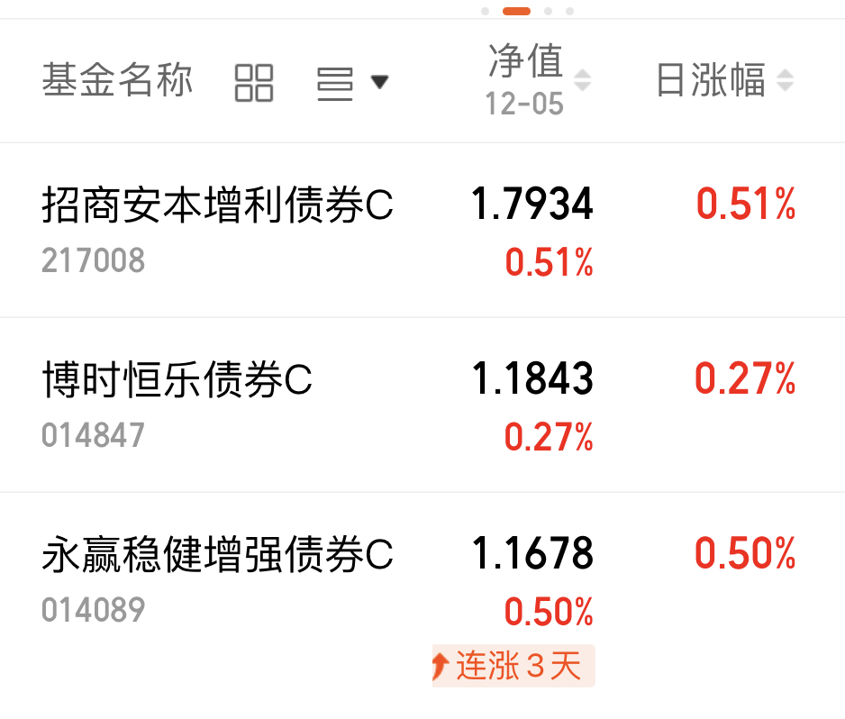 热门债基净值播报。