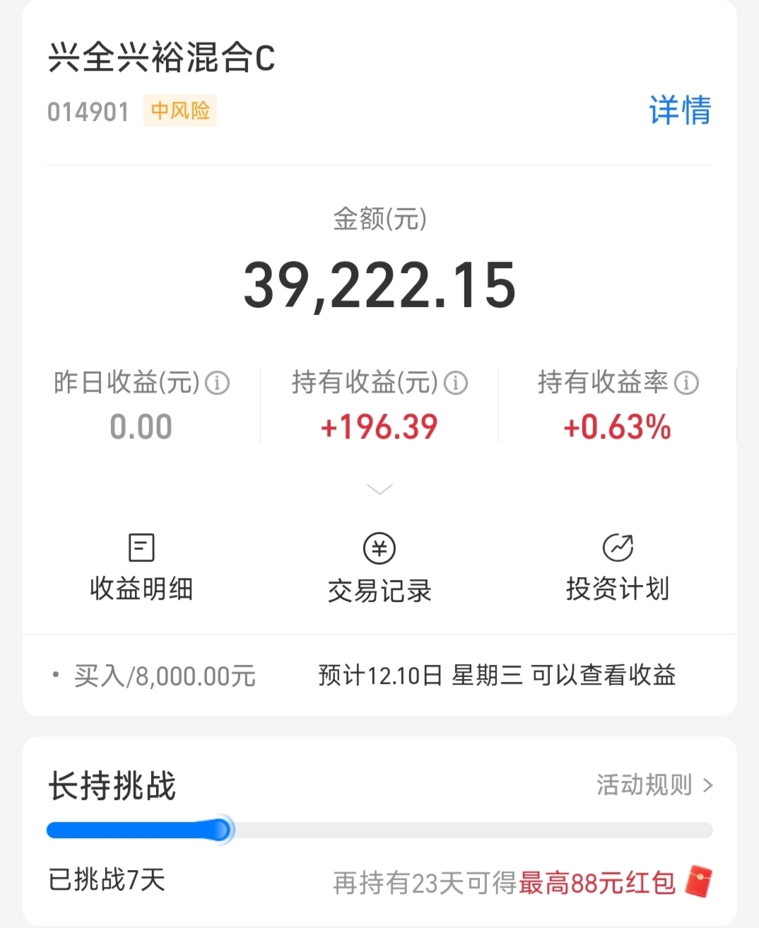 $兴全兴裕混合C$ 我加8000元,固收+