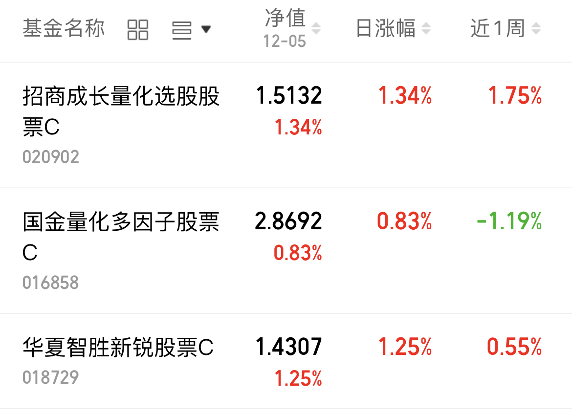市场回暖势头足,今日A股开门见红,情绪面也跟着热起来。量化基金攻守得当,上周收益很可观,一起来看它近一周的涨幅情况: