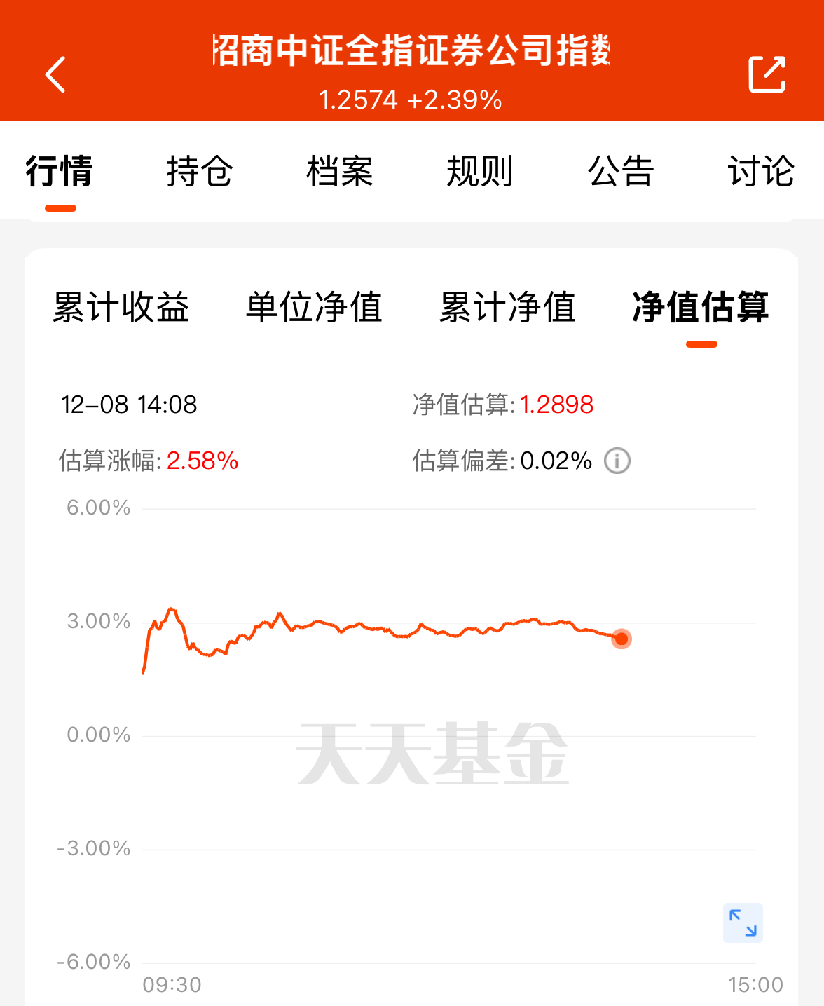 证券从上周五红到今天啊!$招商中证全指证券公司指数(LOF)C(OTCFUND|013597)$现在估值+2.58%,狠狠红了!板块利好扎堆,证监会大佬明确券商板块的发展方向,我认为现在估值处于历史低位,业绩却保持高速增长。政策暖风持续吹拂,资金活水不断注入,后续继续看好证券!