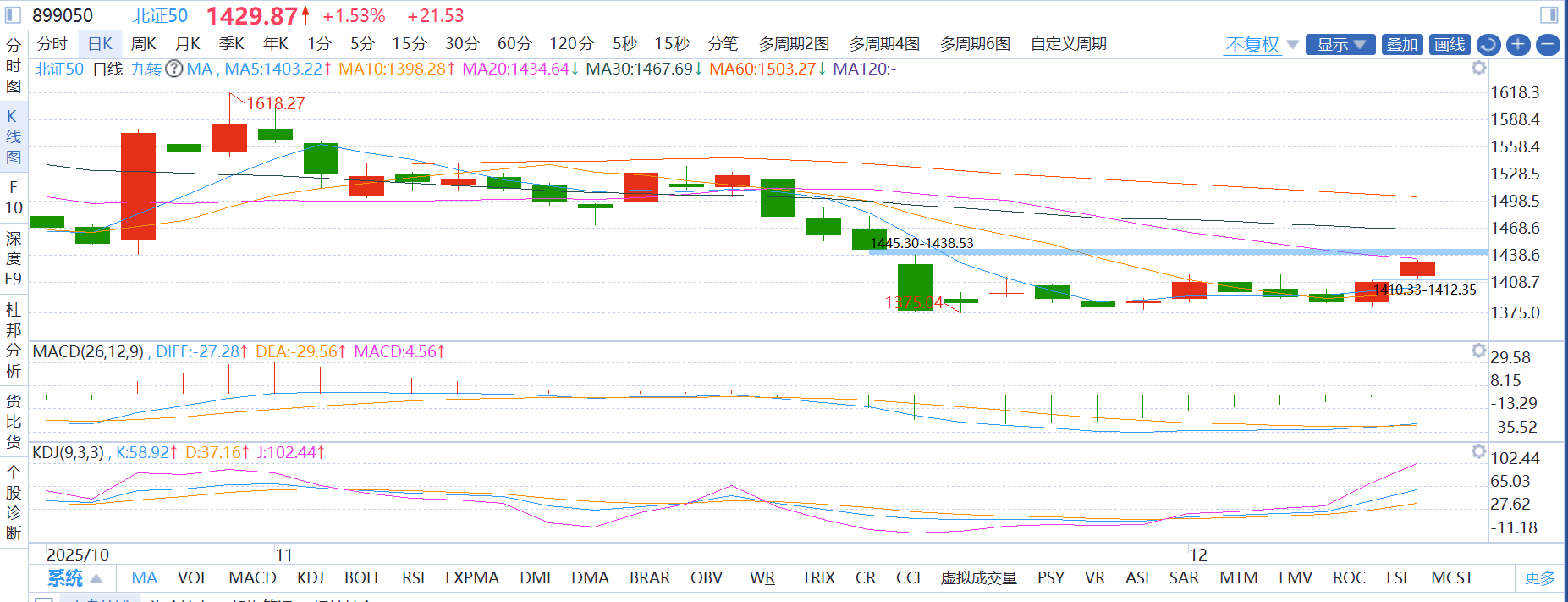 北证50:北证50今天涨了1.42%,收复了部分失地,但还没突破前期震荡区间上沿,属于跟着主板反弹的“被动上涨”,活跃度比主板热门题材差远了。麦爸认为暂时不用动,持仓躺平就行,等突破关键位置再考虑加仓!麦爸选择不动,持仓躺平。