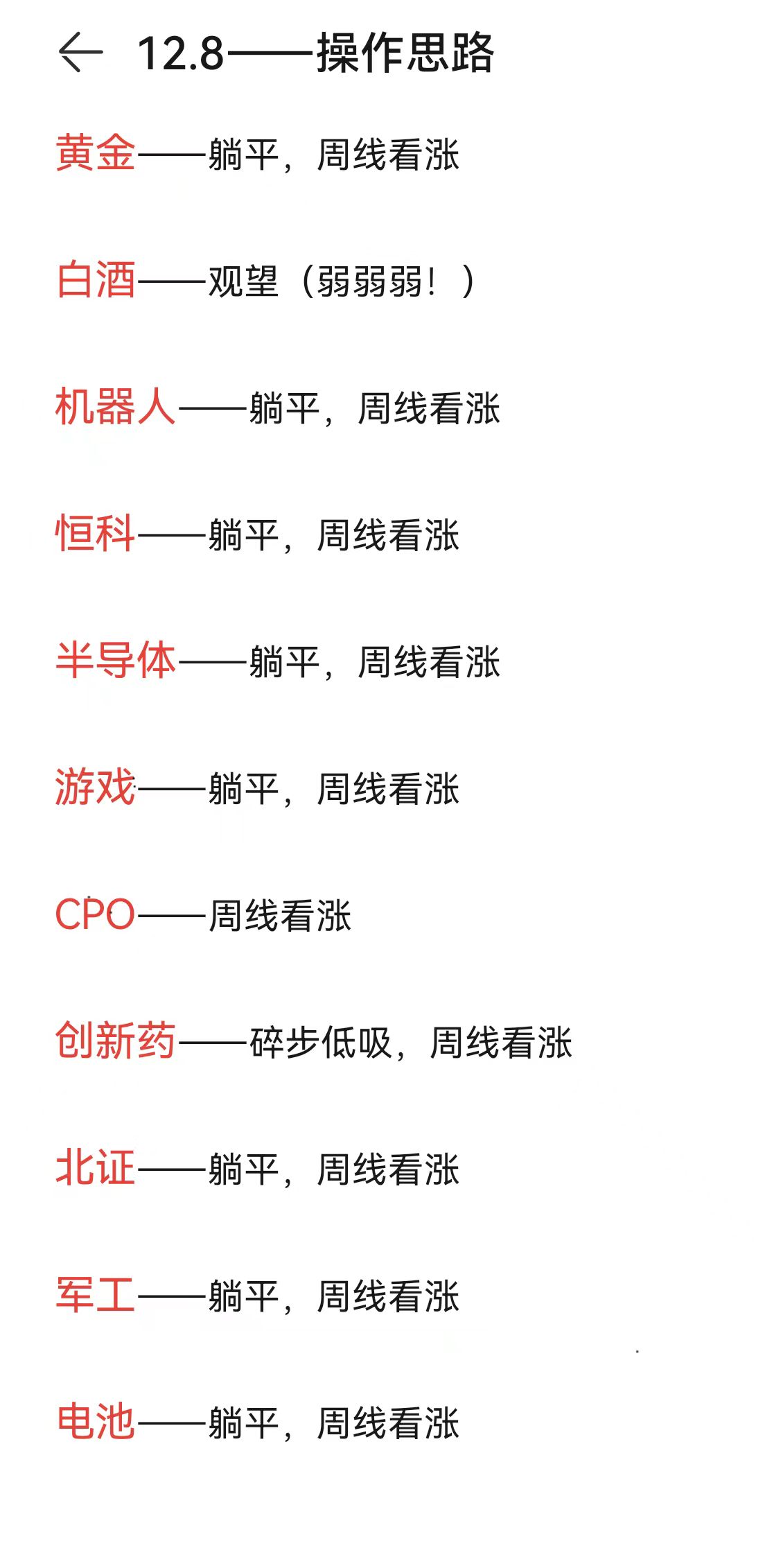 机器人板块:今天机器人板块热度被CPO和航天分流,表现中规中矩,但麦爸一点不慌!周线来看还在上升通道里,而且12月北京、上海两场机器人大会要开,催化密集。麦爸认为,机器人作为科技赛道的重要分支,现在是“蓄力阶段”,后续随着大会召开,大概率会有一波行情,麦爸继续持仓看涨。