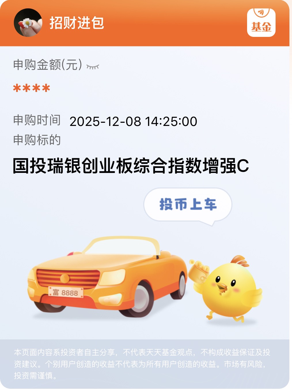 今天市场普涨,买点新基提前布局一下,好像在他们自己平台买会更便宜,没有申购费