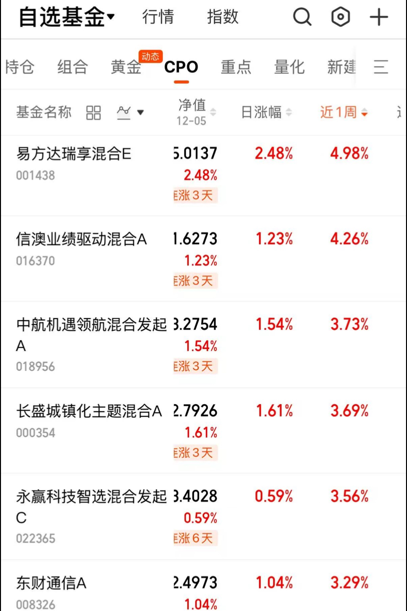 今天股市行情给力,个股涨多跌少,从盘中来看,科技相关领域表现不错,尤其是CPO方向,其中我持有的易方达瑞享混合,它成立以来涨幅超400%,成长行情下本产品爆发力比较强,整体表现不错!$永赢科技智选混合发起C(OTCFUND|022365)$#券商行业迎利好:杠杆上限“松绑”#