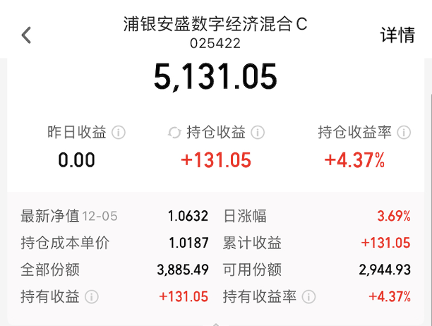 回看基金表现,浦银安盛数字经济混合C作为纯CPO方向的主动型新基金,轻装上阵、弹性充足,在这轮反弹中涨幅靠前,趋势辨识度强。本人看好其在后续主升浪中的潜在表现,因此继续坚定加仓。