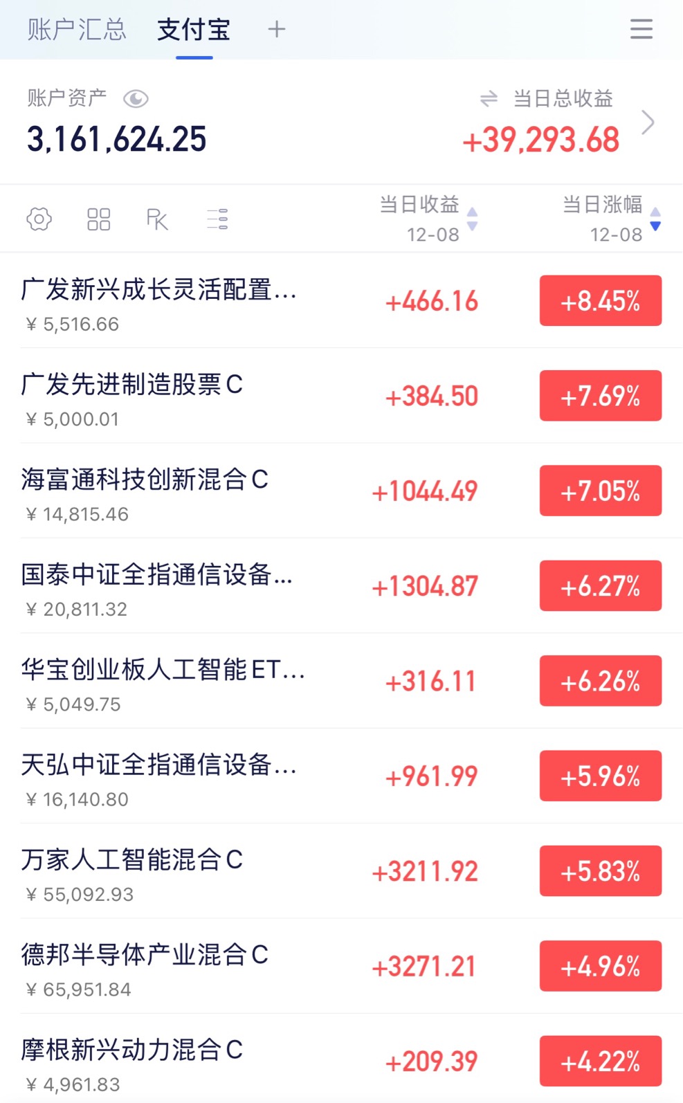 1. 通信设备,上车5000,$国泰中证全指通信设备ETF联接E$ 科技集体起飞,CPO上涨超过5%,这两周以来连续上涨超过13%了,如果算上今天上涨超过19%,重新进入技术性牛市,强者很强的逻辑存在,个人前段时间有做题,今天上车5000,重新上车通信设备