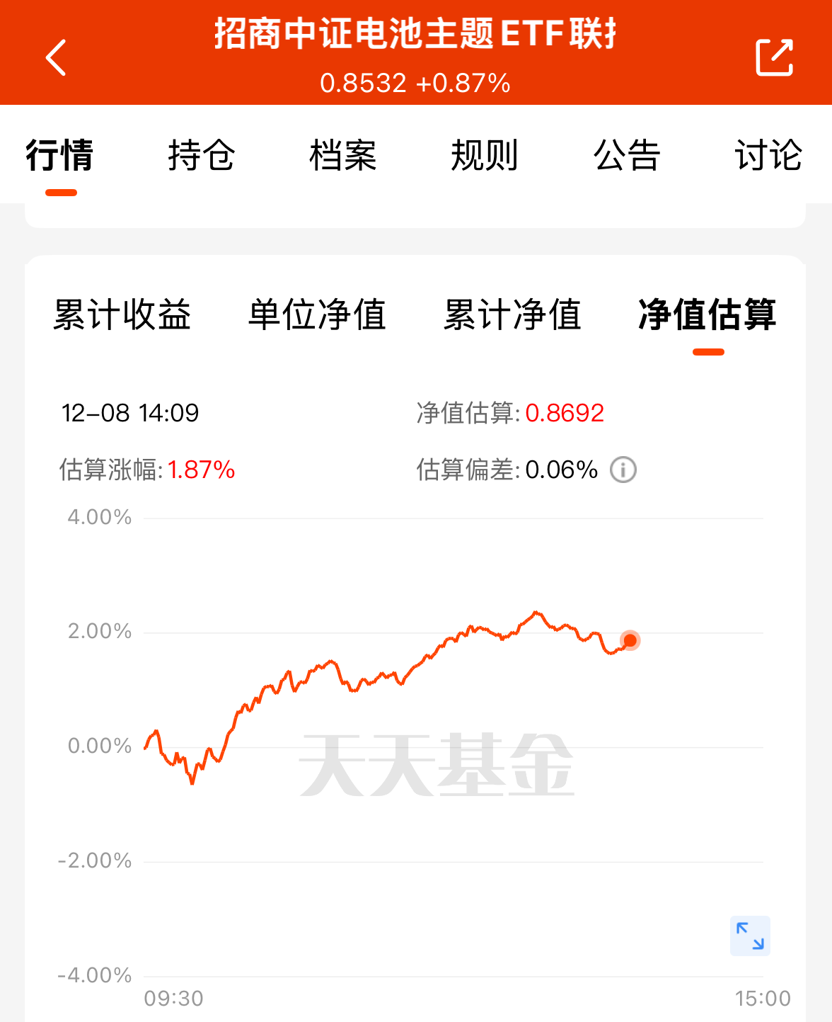 宝子们,今天cpo红晕了吧!但是我想说的是,板块轮动迟早的来,电池这块,继续看好!$招商中证电池主题ETF联接C(OTCFUND|016020)$估值+1.8%,涨幅还行,新能源车销量蹭蹭涨,储能配光伏需求爆单,消费电子复苏也添把火,所以我觉得行情还在,保持关注!