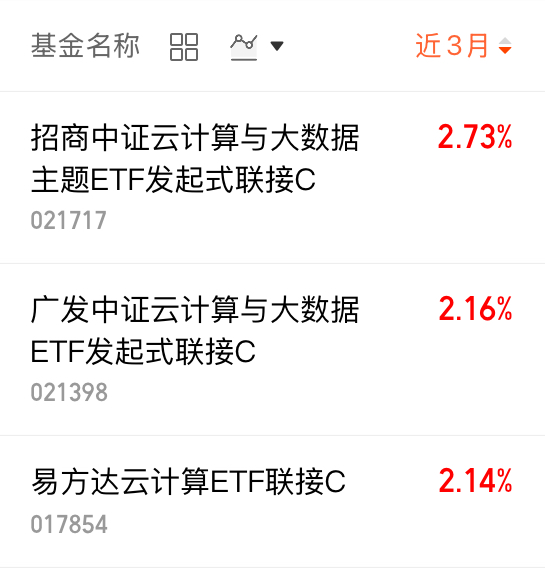 $招商中证云计算与大数据主题ETF发起式联接C(OTCFUND|021717)$近三月涨幅2.73%