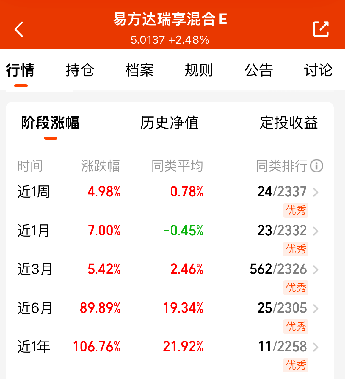 不得不说,科技这块还是得看cpo啊!$易方达瑞享混合E(OTCFUND|001438)$今天估值+6%,近一周4.98%,近一年106%,爆发力很强,成立以来的业绩已经翻了4倍了吧。算力就是 AI 的发动机啊!现在不管是大模型训练还是日常 AI 应用,对算力的需求都爆了,而 CPO 作为光通信的关键玩意儿,速度快还省电,妥妥是算力刚需里的刚需。