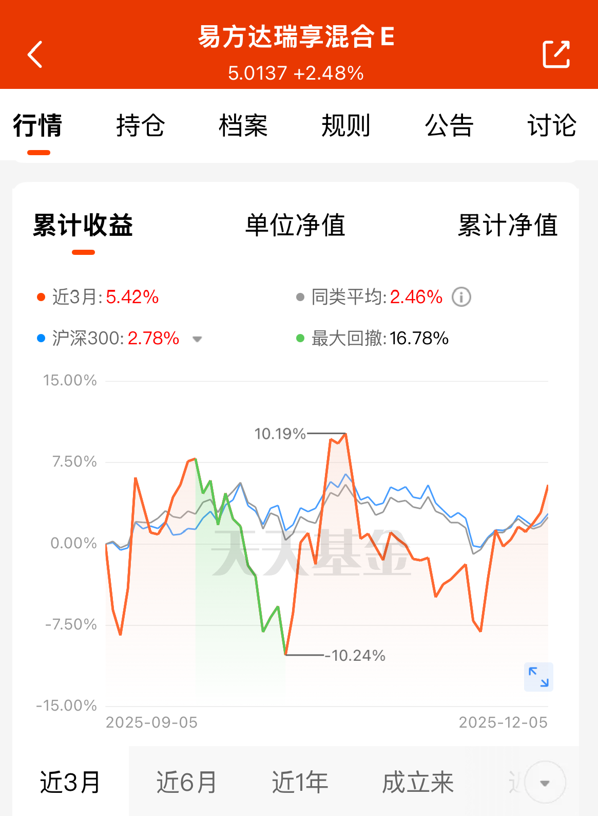 今天妥妥的cpo狂欢了!$易方达瑞享混合E(OTCFUND|001438)$这块也是大涨,这个基金,我记得是最先布局易中天的吧,成立以来业绩翻了4倍,爆发力相当在线,做波段很合适。今天应该就又到高点了,我认为明年的行情还在。保持关注!