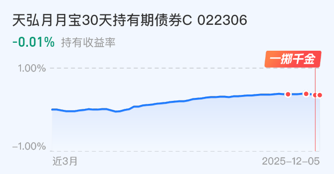 个人今日上车天弘月月宝30天持有期债券C--10W元,讨论区6楼有10W-36.88元的福利包抵扣,震荡行情大额资金我还是以稳为主,这是一支短债策略无股票、无可转债、避开剧烈波动的标的,近半年以来历史涨幅1.04%、值得注意的是近一年以来最大回撤仅为0.10%,10天完成修复,用时间换收益的低波动标的,收益曲线平稳爬坡,持有体验舒适,比货币及余某宝的复利空间大,回顾初期支付宝推出余额理财服务“余额宝”,其对接的货币基金是天弘基金,个人把月月宝平替货币及余某宝的增强版当底仓配置,震荡行情薅羊毛,性价比更高。