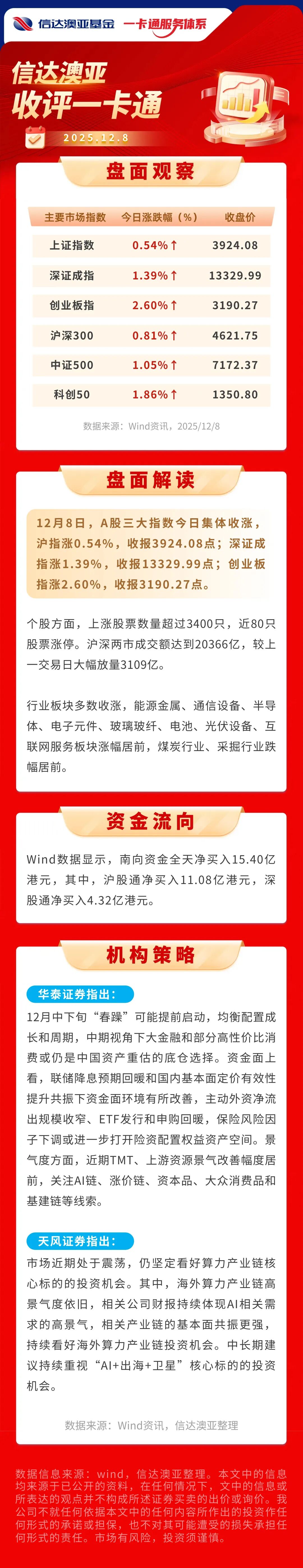 【收盘点评】A股三大指数今日集体收涨,沪指涨0.54%,收报3924.08点